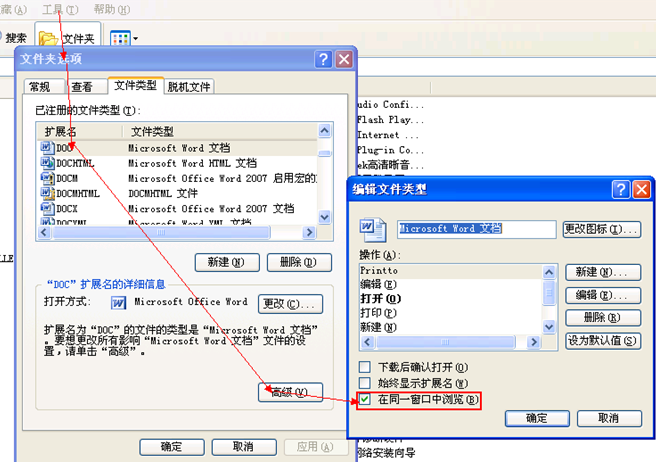 a. 如果是 XP,请参照下图确认:在同一窗口中浏览,是否打勾