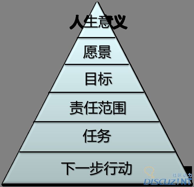 有个人生六大高度理论,自下而上分为两个部分:一是回顾部分,自下而上有三个层次,分为下一步行动(这是时间管理中的概念,主要包括今天“必须”要做的事情和当自己空闲时能够做的事情,一般就要看最底层高度的内容)、任务(通常指的是项目,就是要实现自己短期目标时,要参考的高度)、责任(当自己需要平衡的时候,要看这个高度的内容)。