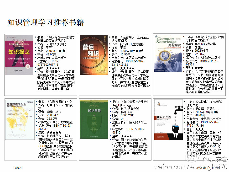 吴庆海:知识管理书籍 推荐